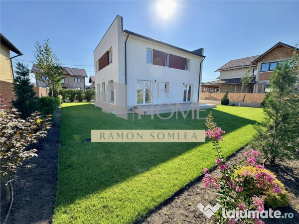 Casa este moderna, dispune de 5 camere generoase cu multe spatii vitrate mai ales la parter pentru a putea avea contact vizual cu gradina. Livingul si bucataria au conexiuni directe cu o teresa generoasa. Terasa casei se continua cu o gradina aerisita, iar dupa linia gardului nu exista si nici nu vor exista constructii, acest lucru oferind spatiu, intimitate.