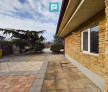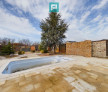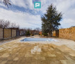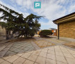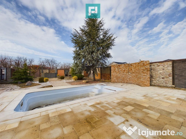 Grădina este frumos amenajată cu gazon, arbuști ornamentali, grătar, piscină și alei cu pavaj și piatra naturala.