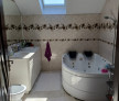 La etaj sunt 3 dormitoare și o baie cu jacuzzi.
