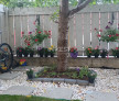 Grădină în fața casei amenajată cu flori, gazon și un cireș Grădină în spate cu zonă de relaxare, grătar, gazon și o mică grădină de legume – locul perfect pentru petrecerea timpului în aer liber .