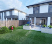 Gradina este amenajata cu gazon, racord exterior pentru apa si garduri cu inchideri metalice vopsite electostatic.
