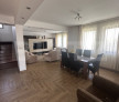 La parter, casa dispune de o bucătărie mare, închisă, complet mobilată și utilată, gândită pentru confort și funcționalitate,un living spațios, care comunică direct cu zona de dining, formând un spațiu de zi ideal pentru familie și oaspeți,o baie modernă, complet utilată.La etaj sunt patru dormitoare complet decomandate, toate mobilate, fiecare având suficient spațiu pentru un confort personal real,o baie încăpătoare,un balcon cu acces din unul dintre dormitoare.