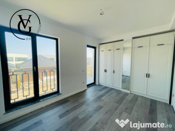- Etaj: dormitor matrimonial cu dressing, baie proprie și balcon, două dormitoare secundare cu acces pe balcon, baie