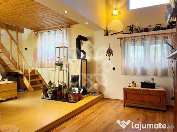 The ground floor is spacious and bright, composed of a welcoming living room, a place for cooking, bathroom with shower and access hall. The attic is on wooden structure, here is the chic bedroom where you can admire a beautiful view of the hills of Oradea in the morning.