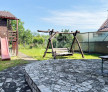The yard in front of the house has stone-paved alleys, green spaces full of flowers and various ornamental shrubs. Behind the house there is a playground for children, lots of green space and a wooden annex for storage. Here too, the owners have a garden with vegetables and fruit trees.