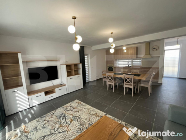Se oferă spre închiriere casă modernă, construcție nouă, ideală pentru o familie. Imobilul este compartimentat eficient și dispune de 3 dormitoare spațioase, 2 băi, bucătărie și living luminos, cu un design contemporan și finisaje de calitate superioară.