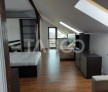 La mansarda mai sunt 2 dormitoare prevazute cu pat matrimonial si baia care deserveste aceste camere si beneficieaza de balcon.