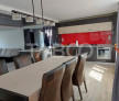 La parter este livingul generos si luminos, mobilat in asa fel incat poti avea activitati in care pot participa multe persoane, bucataria este open space, mobilata si utilata modern, o baie, o camera tehnica, iar pe scara interioara foarte artistica ajungem la etaj unde sunt 2 dormitoare spatioase si o baie amenajata cu cabina de dus.