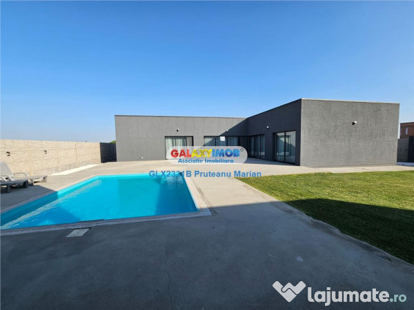 Imobilul, edificat in 2022, pe un teren de 1020 mp, este structurata pe amprenta cu dispunere de camere bine vitrate, aerisite ,avand vizualizare la Piscina exterioara cu un wiu superb ce noaptea piscina este feric iluminata , beneficiaza de o curte superba prevazuta cu gazon, arspresoare si vegetatie matura, cu spatiu amenajat pentru arbusti decorativi si aranjamente florale in vecinatate la care se adauga zona de agrement si zona de barbeque.