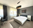 Vanzare casa de lux, P 1E, 4 camere, mobilata si utilata in totalitate in anul 2016, Blejoi, Prahova. Casa este amplasata intr-o zona linistita, fara trafic rutier intens, avand in vecinatate constructii noi, parc, scoala, gradinita. Aceasta este construita in anul 2014 pe cadre din beton armat, peretii exteriori din caramida Porotherm 30 cm si interori din caramida Porotherm 25 cm, planseu de beton intre etaje, acoperis tabla ondulata tip Lindab si termoizolatie, izolatie exterioara cu polistiren 10 cm. Amprenta casei este de 150 mp, suprafata construita 300 mp, iar suprafata utila de 196 mp, compartimentati astfel: parter- living, bucatarie, baie, dormitor, camera tehnica, etaj- dormitor principal cu dressing, dormitor secundar si al treilea dormitor cu baie transformat in dressing, terasa, hol. Terenul are suprafata de 503 mp si deschidereladoua fronturi stradale de 22,2 ml respectiv 15,49 ml fiind imprejmuit cu gard din zidarie si lemn. Dispune de urmatoarele imbunatiri si finisaje: gresie, faianta, parchet laminat, tamplarie PVC cu geam termopan 4 anotimpuri, usi interioare MDF cu sticla, calorifere aluminiu, 2 aparate aer conditionat, scara din beton imbracata cu gresie portelanata. Incalzirea se realizeaza cu ajutorul centralei termice si a caloriferelor din aluminiu. Se vinde complet mobilata cu mobila din MDF facuta pe comanda si utilata cu electrocasnice incorporate, Whirpool, precum: masina de spalat vase, masina de spalat rufe automata, cuptor electric, cuptor microunde, plita inductie.
