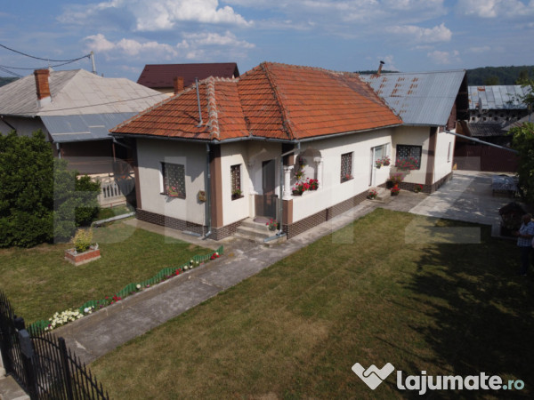 Casa, renovată la exterior și acoperită cu țiglă, este structurată ideal pentru o familie care caută liniște și confort. Este semidecomandată, cu o compartimentare practică: living, 3 dormitoare, bucătărie și baie, iar un dormitor și cele două cămări sunt construite pe placă de beton, la fel ca și anexele.