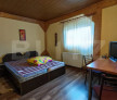 Construită din lemn, cabana cuprinde 7 camere de cazare, fiecare dotată cu băi proprii, oferind intimitate și confort vizitatorilor. Un spațiu generos pentru servirea mesei este disponibil, alături de un bar perfect pentru relaxare, iar terasa exterioară oferă un cadru ideal pentru a te bucura de peisajul montan în orice anotimp.