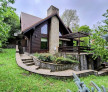 Casa este constrita din lemn cu fundatie din beton armat placat cu piatra naturala.