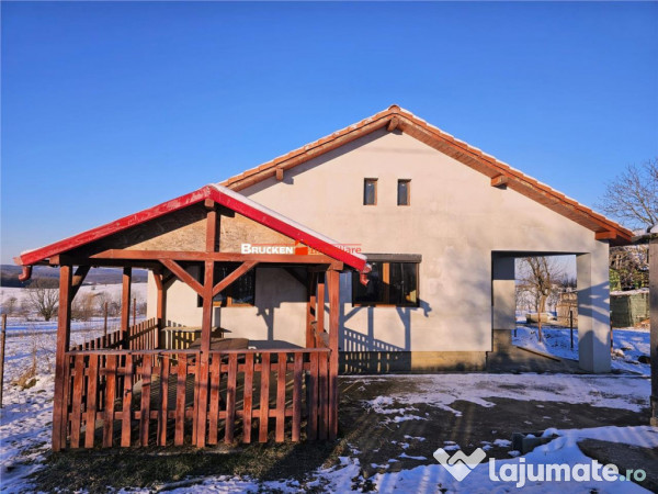 Constructia, finalizata in 2019, este realizata din caramida si izolata termic, avand o suprafata construita de 103 mp, respectiv 80 mp utili. Exteriorul necesita aplicarea unui finisaj decorativ pentru un aspect final complet. Incalzirea este asigurata de o centrala electrica, oferind confort in orice sezon.