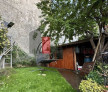 În spatele casei, la nivelul acoperișului (terenul în zona respectivă este în pantă), este o curte de aproximativ 80mp, aflată în folosință, pentru care se achită chirie la stat. În curte e plantat un cireș, care oferă atât umbră, cât și un desert delicios.