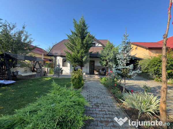 Curtea este amenajată cu alee pavata , pentru zona de parcare masini, zonă verde, arbori ornamentali , un foișor si chiar un ciubar , ideal pentru relaxare.