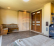 La parter se află un living spațios, o bucătărie cu cămară de alimente, un dormitor, o baie cu cabină de duș, centrala termică, un beci și un garaj.