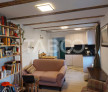 La etaj se ajunge din curte, pe o scara interioara si se afla un hol, un living o baie si o bucatarie open space cu livingul.