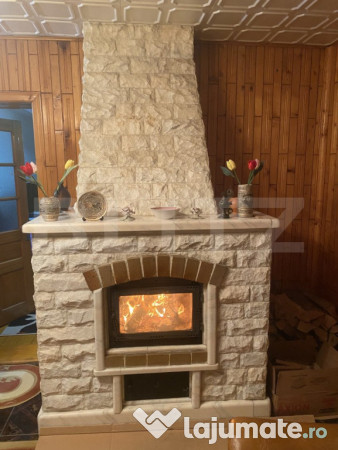 - Living confortabil cu șemineu pe lemn