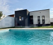 La parter avem un living cu înălţimea de 7m si balcon interior, view panoramic catre curte si piscina, bucătărie open space cu acces direct in terasa, hol, baie, cameră tehnică şi un dormitor. La etaj avem doua dormitoare, dintre care unul cu dressing propriu, baie, hol şi camera destinata hainelor (laundry room). Fiecare dintre dormitoare este prevăzut cu balcon propriu. Dormitoarele sunt prevăzute cu mochetă de calitate superioară, parchet laminat şi gresie si faianţă de import.