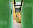 Intrând prin ușa de intrare cu detalii de fier, ajungi într-un hol îngust, care duce către grădina mică. Aceasta leagă clădirea principală (aproximativ 75 mp) de clădirea anexa (aproximativ 40 mp). O terasă mică te invită să petreci ore plăcute vara. Viile oferă, în această perioadă, temperaturi plăcute și umbră.