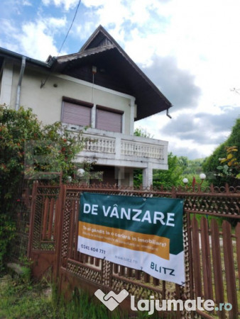 Blitz Targoviste va propune spre vanzare o casa individuala intr-o zona pitoreasca de deal. Casa este locuibila, dar necesita renovare .Este compusa din parter si etaj.La parter regasim bucatarie ,debara ,sufrage, 1 hol, casa scarii si baia de serviciu, iar la etai, 2 dormitoare , hol, baie si balcon pe toata suprafata dormitoarelor. Deasemenea , casa beneficiaza de un baci cu intrare din exterior.Pe teren se regaseste o magazie destul de generoasa din tabla, ian prelungirea magaziei se afla o constructie din caramida care poate fi amenajata ca si bucatarie de vara sau cabana. Suprafata terenului este de 1600mp.