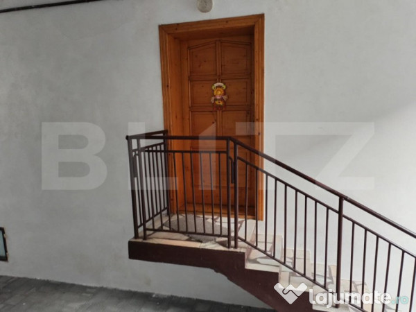 Blitz Satu Mare va propune spre achizitionare o proprietate deosebita, situata intr-o zona linistita. Pe suprafata terenului de 300 mp, se regasesc 2 constructii: casa propriu-zisa cu o suprafata generoasa de 180 de mp utili, compartimentata astfel: 4 dormitoare( 1 la parter si 3 la etaj), un living cu iesire pe terasa , o bucatarie cu debara si 2 bai(una la parter si una la etaj). Casa este mobilata, utilata si izolata pe interior. Confortul termic este asigurat de o centrala pe gaz de 32 de kw(incalzeste 600 metri cubi de aer) cu 19 calorifere noi. Usa de la intrare este din lemn, geamurile sunt din termopan si sunt prevazute cu jaluzele. Casa are acoperis din tigla. La subsol este un beci generos, uscat, inalt de 2.20 m, format din doua incaperi prevazute cu geam(ventilatie naturala). A doua constructie este casa mica in suprafata de 42 mp si este compusa dintr-un antreu si o camera mare. Accesul in proprietate se face printr-o poarta metalica si este conditionat de sonerie. Este casa ideala pentru cei care apreciaza linistea si spatiul generos. Contactati-ne pentru detalii suplimentare si vizionare!