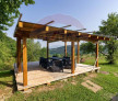 - Cabana beneficiază de o terasă închisă de 40 mp, acoperită cu panouri solare fotovoltaice, asigurând un consum redus de energie