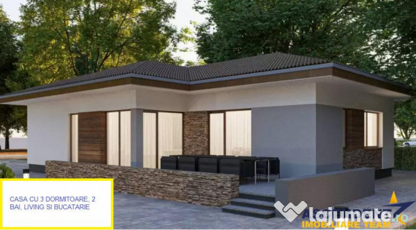 Structurata pe parter, configuratia casei este urmatoarea- hol, living, bucatarie inchisa,3 dormitoare, 2 bai cu geam, dressing, spatiu tehnic si terasa de 20 mp.