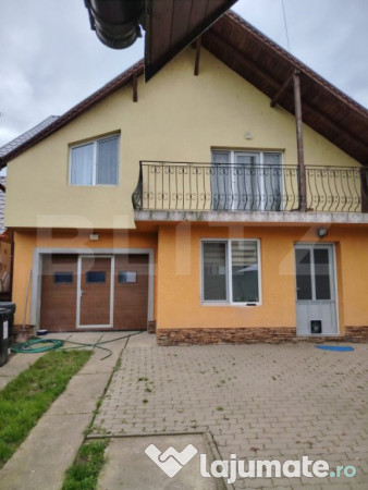 BLITZ va ofera spre inchiriere o casa in Sangeorgiu de Mures. Casa este amplasata pe un teren de 600 mp, are o suprafata utila de 130mp si are in componenta la parter 1 living, 1 bucatarie deschisa, si 1 baie. La etaj se gasesc 2 camere, 1 living, 1 baie, precum si doua balcoane. Peretii sunt construiti din caramida de 30 cm izolati cu polistiren de 10 cm pe o fundatie de beton. Confortul termic este asigurat de o centrala pe gaz si calorifere. Casa dispune si de 1 pod. Pe proprietate se mai afla si o a doua casa aflata in proces de renovare.care ar putea fi utilizata in scop de depozitare.. Proprietatea mai dispune de 1 pivnita, 1 garaj, 1 camara si o anexa pentru caini si porumbei. Situata intr-o zona linistita la distanta mica de magazine, scoli si mijloace de transport, proprietatea este ideala pentru familii ce locuiesac impreuna cu parintii. Va asteptam cu drag la vizionare!