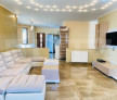 Casa este compartimentata astfel: 2 dormitoare, living, bucatarie, doua bai, dressing separat si debara. Toate finisajele sunt de calitate si mobilierul la comanda din lemn masiv.