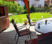 Curtea libera, de aproximativ 550 mp, este frumos amenajata cu gazon si vegetatie, oferind spatiu generos pentru relaxare si activitati in aer liber. Aici se afla o terasa acoperita, un garaj inchis, un loc de parcare in curte si o zona perfecta pentru joaca copiilor sau pentru petrecerea timpului alaturi de familie.