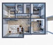 Proprietatea este compusă din Living: 24mp, Baie: 5 mp, Baie/Dressing - 3.5mp, Bucătărie: 11 m, Dormitor: 15 mp,Dormitor: 13 mp,Hol: 9.5 mp, Terasa Acoperita: 20 mp.