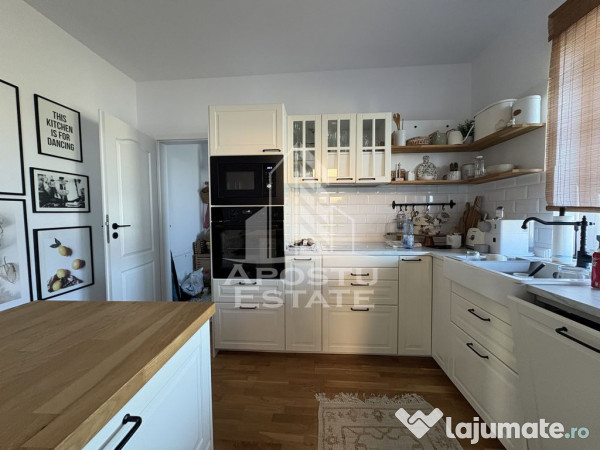 • Bucatarie inchisa cu usa culisanta, iesire pe terasa si camara