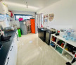 -loc de depozitare sub casa scarii care este lata de 3 m, terasa acoperita, de 40mp imbracata in piatra naturala si pardoseala din gresie, bucatarie de vara care este dotata cu toate utilitatile, plus uscator si masina de spalat haine.