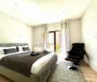 Dormitor matrimonial cu baie proprie cu dus este mobilat astfel :pat matrimonial,comoda si 2 noptiere,dulap pentru depozitare(in locul dulapului la dorinta viitorului proprietar se poate amenaja un mini dressing asa cum este prevazuta aceasta zona in RLV),acest dormitor avand acces catre terasa principala din spatele casei.