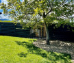 Invitandu-va la experiorul casei si pasind pe aleea placata cu travertin sau prin gazonul verde foarte atent intretinut din partea stanga a proprietatii, va vom prezenta terasa principala, utilata cu masa si scaune pentru relaxare si gratar (bineinteles placata tot cu travertin de exterior) , una generoasa cu o suprafata de 20 mp si un spatiu verde pentru activitati de recreere, in coltul caruia troneaza impetuos un nuc tanar, pregatit sa ofere racoare in zilele toride ale oricarei veri, ce o veti petrece pe viitor in aceasta proprietate.