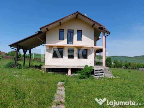 Casa de vanzare situata la 11 km de Sibiu, in Sura -Mare, Hamba, localitate pitoreasca si autentica.Casa este individuala si a fost construita in anul 2010 cu structura de caramida si un regim de inaltime D+P+M si un mic foisor deasupra.Suprafata utila a casei este de 262 mp, iar terenul liber este de 1670 mp. In curte este carport pentru masina, iar pe partea din spate a terenului este livada cu pomi fructiferi.