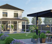 Contorizare individuala pentru gaz, curent si apa. Curtea si gradina vor fi amenajate cu gazon, alei pietonale pavate, alee de acces auto si locuri de parcare pavate. Racorduri exterioare pentru apa, atat in partea din fata, cat si in partea din spate a casei. Imprejmuire cu gard cu structura din beton, inchideri din caramida si panouri metalice vopsite electrostatic. Poarta metalica pentru acces auto, cu posibilitate de automatizare, si poarta pietonala cu interfon.
