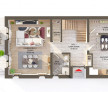 Parterul este compartimentat astfel: camera de zi cu acces catre o terasa acoperita, bucatarie inchisa, baie dedicata zonei de zi, o camera, debara si hol de acces prevazut cu spatiu pentru pantofar si cuier. In plus fata de suprafata utila, parterul beneficiaza si de o terasa acoperita, ideala pentru relaxare.