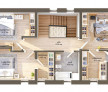 Casa dispune de o suprafata utila de 145 mp, repartizata pe doua niveluri.
