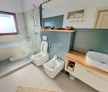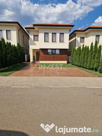 Acoperișul este realizat din țiglă Bramac, iar sistemul de încălzire în pardoseală, marca Tece, dispune de termostate de ambient în fiecare cameră pentru un confort sporit.