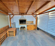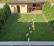 Curtea este amenajată cu plante decorative și gazon, având sistem de irigații automatizat, foișor și spațiu de depozitare.