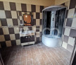 Casa la stadiul de gri la interior, cu un dormitor si o baie complet amenajate.