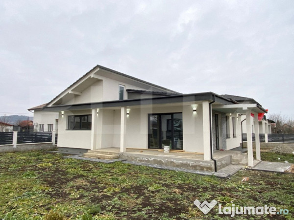 Casa de vanzare dispusa pe un singur nivel cu suprafata utila de 125 mp utili, cu acces usor spre oras, pozitionata intr-o zona nou dezvoltata cu case moderne. Ferita de agitatia orașului, casa beneficiaza de un cadru natural care va ofera mai multa linisite si intimitate, aspect esential pentru confortul zilnic.