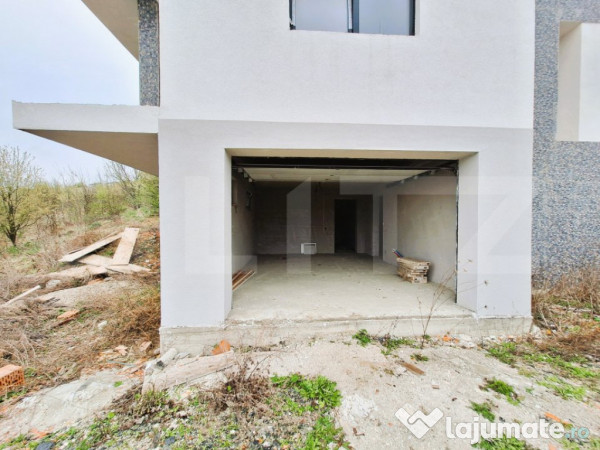 Blitz propune spre vânzare o casă individuala situată în Dezmir, având o suprafață utilă de 190 mp pe un teren de 550 mp. Casa este dispusă pe 3 niveluri, demisol, parter si etaj, oferind o compartimentare practică și eficientă. La demisol gasim camera tehnica, spatiu de depozitare (care poate fi transformat si intr-un dormitor) si garajul. La parter avem un hol, intr-un living, bucatarie, o baie de serviciu si un spatiu depozitare (sub scari). La etaj sunt situate 3 dormitoare confortabile si doua bai, din care unul este dormitorul matrimonial cu baie proprie. Casa are incalzire prin pardoseala. Se preda la stadiul de semifinisat, fara centrala termica, cu geamuri termopan si cu instalatia electrica. Pentru mai multe detalii, va rog sa ne contactati