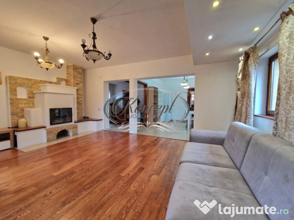 Koncept Imobiliare va ofera spre inchiriere o casa individuala, situata in cartierul Europa, intr-o zona linistita, cu acces rapid catre principalele artere ale orasului si puncte de interes urban. Proprietatea beneficiaza de orientare mixta, oferind lumina naturala pe tot parcursul zilei, fiind ideala atat pentru rezidenta, cat si pentru activitati de birouri sau sediu social. Casa are regim de inaltime S+P+1+Pod si o suprafata utila de aproximativ 170 mp, fiind amplasata pe un teren cu suprafata libera de circa 120 mp, amenajat cu gazon si pavaj, cu posibilitate de parcare pentru pana la 4 autoturisme si un loc de parcare in garaj. Curtea este completata de o terasa spatioasa, pozitionata la nivelul parterului, perfecta pentru momente de relaxare. La parter regasim o bucatarie complet utilata, dotata cu masina de spalat vase, frigider, cuptor, plita si hota, o incapere separata pentru dining, un living generos cu semineu, hol cu dressing, baie cu geam, casa scarii, garaj cu usa actionata electric si acces catre pivnita. Etajul este compus din trei camere, dintre care una beneficiaza de baie proprie, un hol cu spatiu de depozitare, o a doua baie si patru balcoane care aduc un plus de luminozitate si deschidere. Incalzirea se realizeaza prin centrala termica proprie cu calorifere. Finisajele sunt moderne, cu mobilier din lemn masiv si usi interioare din lemn, elemente care contribuie la o atmosfera calda si eleganta. Proprietatea este partial mobilata, permitand adaptarea usoara in functie de nevoile viitorului chirias. Datorita compartimentarii eficiente, suprafetelor generoase, a curtii amenajate si pozitiei intr-o zona linistita, casa este potrivita atat pentru o familie care isi doreste confort si intimitate, cat si pentru firme in cautarea unui spatiu reprezentativ pentru birouri, cu acces facil si posibilitati multiple de parcare. Pentru informatii suplimentare, programarea unei vizionari sau pentru a afla oferta noastra completa va stam la dispozitie telefonic, prin e-mail sau la sediul agentiei noastre, pe str. Aviator Badescu, nr. 19, Cluj-Napoca.