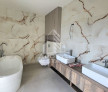-sistem smart home Knx astfel toate intrerupatoarele sunt din sticla cu termostat si senzor de umiditate si toate corpurile de iluminat sunt controlate vocal sau de pe aplicatia telefonica.
