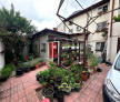 Curte amenajată cu flori, jardiniere, pomi fructiferi