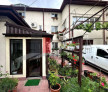 Curte amenajată cu flori, jardiniere, pomi fructiferi
